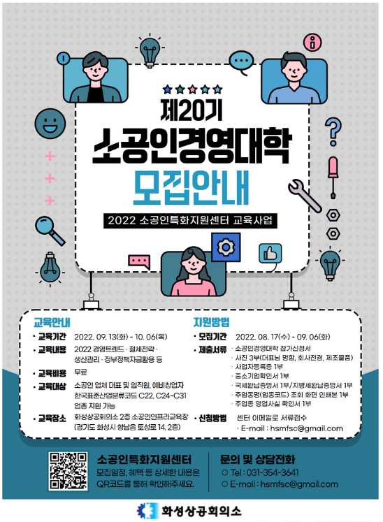 * 문의처: 031-354-3641 (화성상공회의소 소공인특화지원센터)