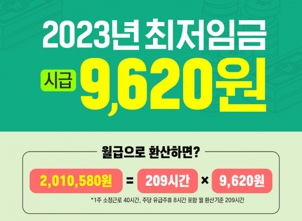 2023년에 적용되는 최저임금이 확정,고시되었습니다.