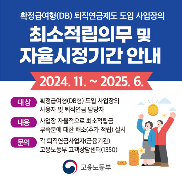 DB형 퇴직연금 최소적립의무 자율시정기간이 25.6.30. 만료됩니다